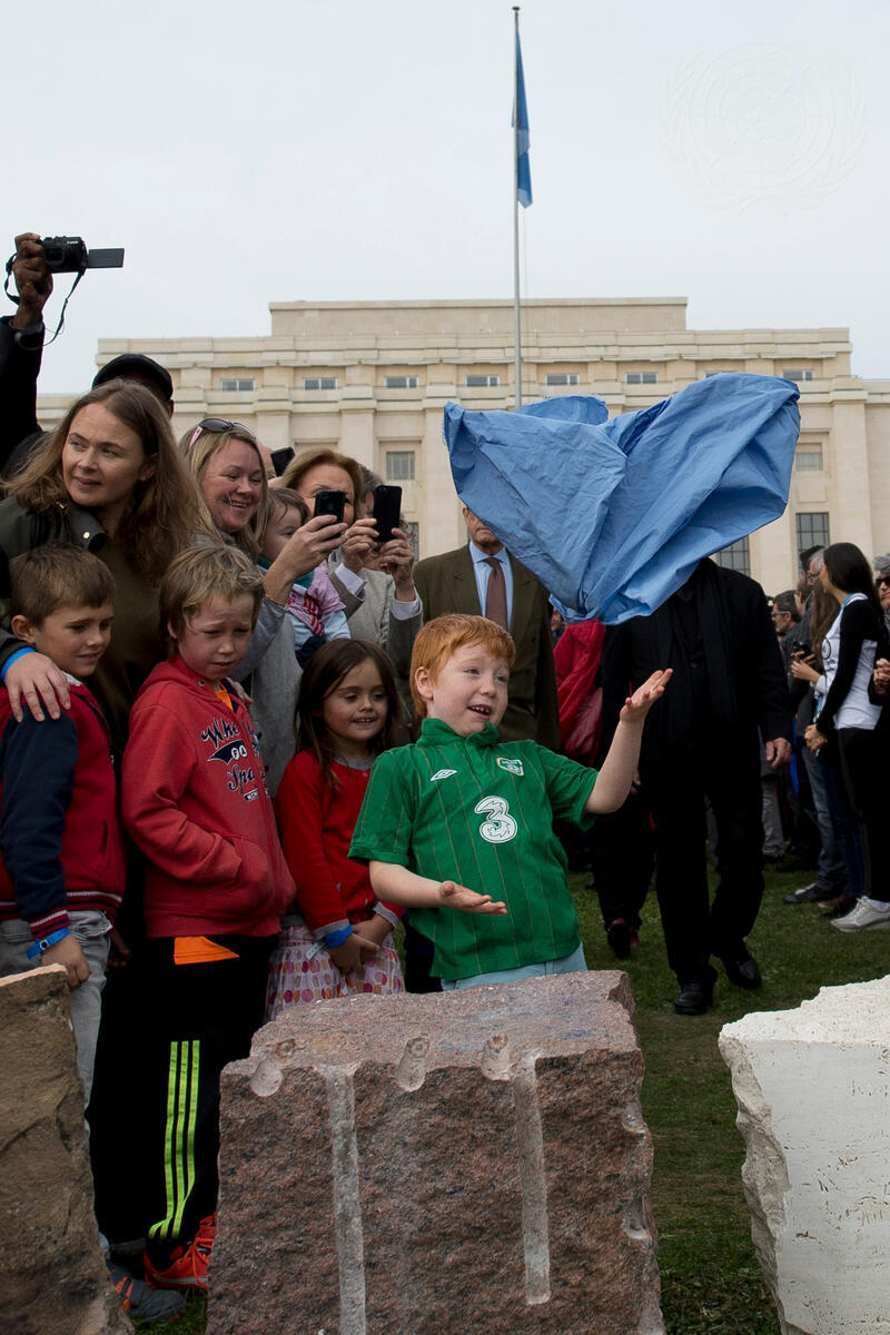 Participants at the unveiling on UN Day of “The Rebirth”, a monumental sculpture designed by Italian artist Michelangelo Pistoletto, symbolizing the ‘rebirth’ of society.
