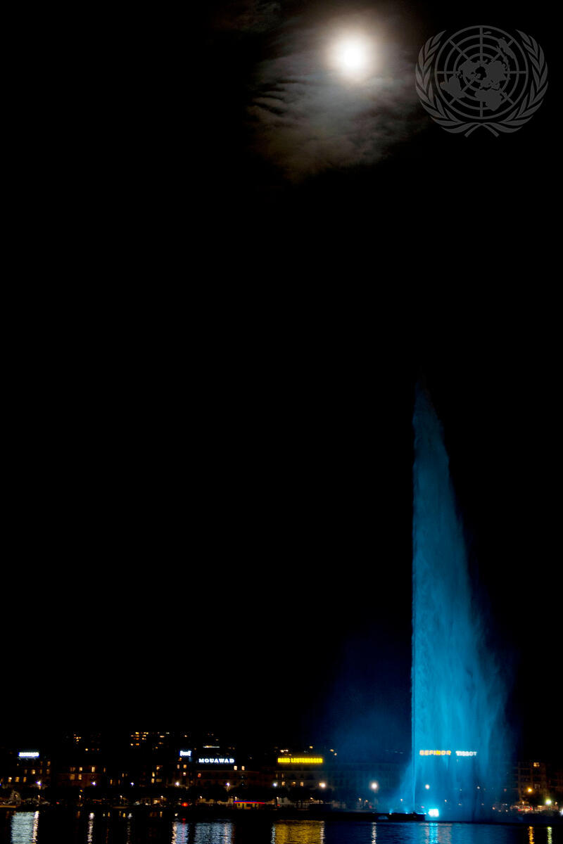 The Jet d'Eau, one of Geneva’s most famous landmarks, is lit in blue for the celebration of the 70th anniversary of the founding of the United Nations. The fountain joined some 300 sites around the world – from Australia's Sydney Opera House to the Great Pyramids of Giza in Egypt to the Empire State Building in New York – which were lit “UN blue” for the global commemoration on 24 October, UN Day.