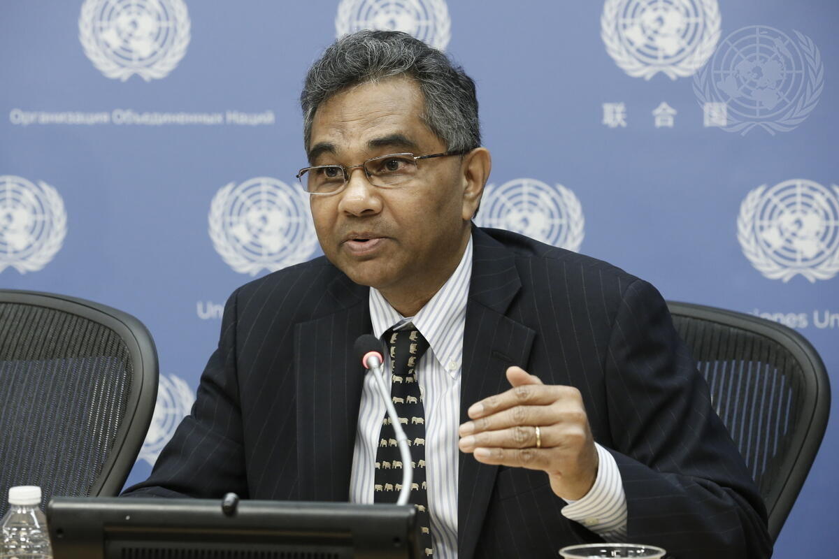 Jacob Kumaresan, Executive Director of the World Health Organization (WHO) Office in New York, briefs journalists on the occasion of World Health Day (7 April), being observed this year under the theme: “From farm to plate, make food safe.”