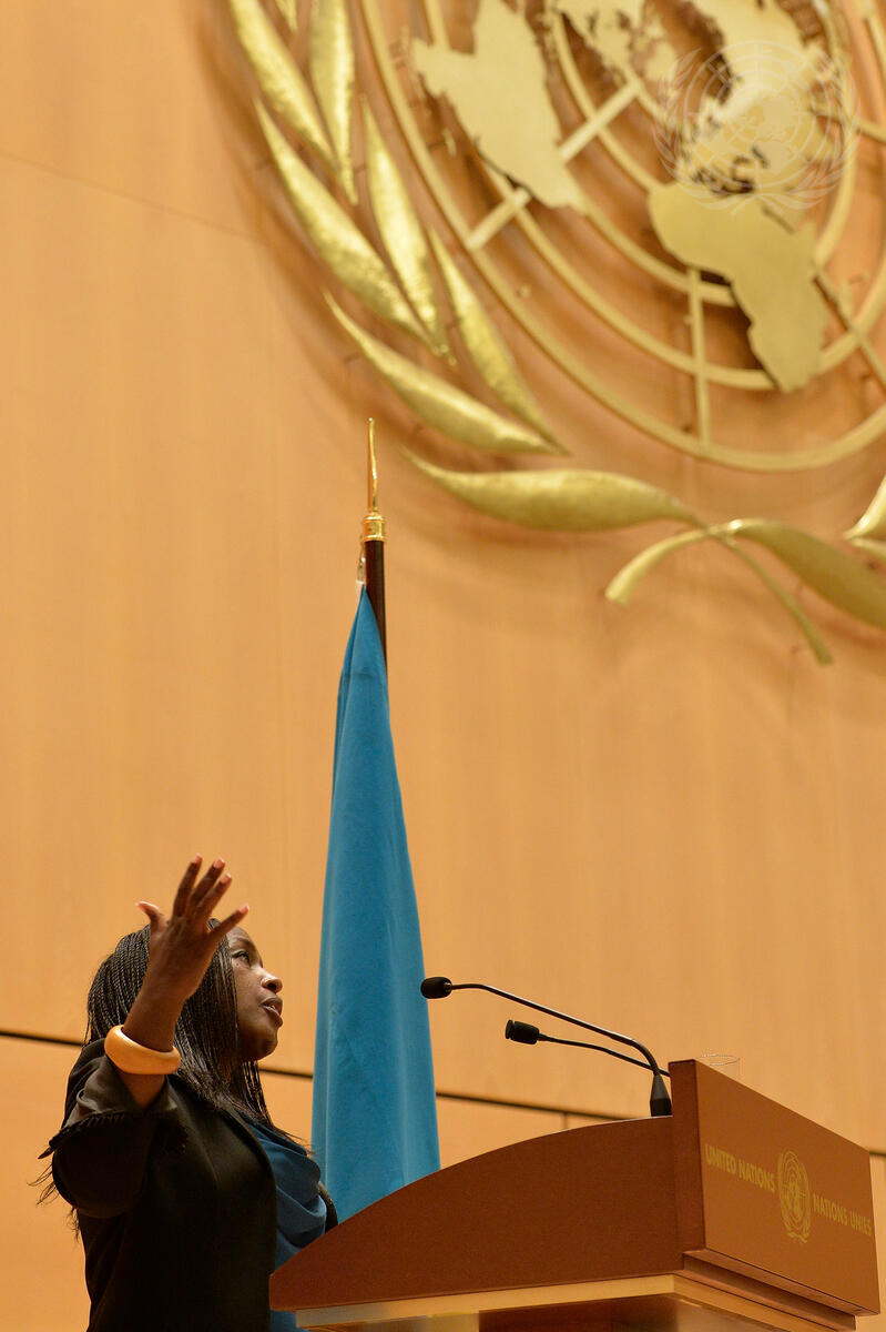 Mathilde Muhongerwa, survivor of the 1994 genocide in Rwanda, speaks at the event held by the UN Office at Geneva (UNOG) in observance of the International Day of Reflection on the Genocide (7 April).