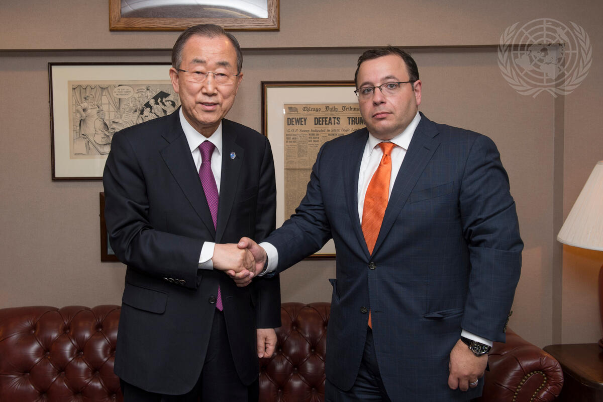 Secretary-General (left) meets with Ali Rezaian, brother of Jason Rezaian, The Washington Post’s correspondent in Tehran, who has been detained in Iran since July 2014.