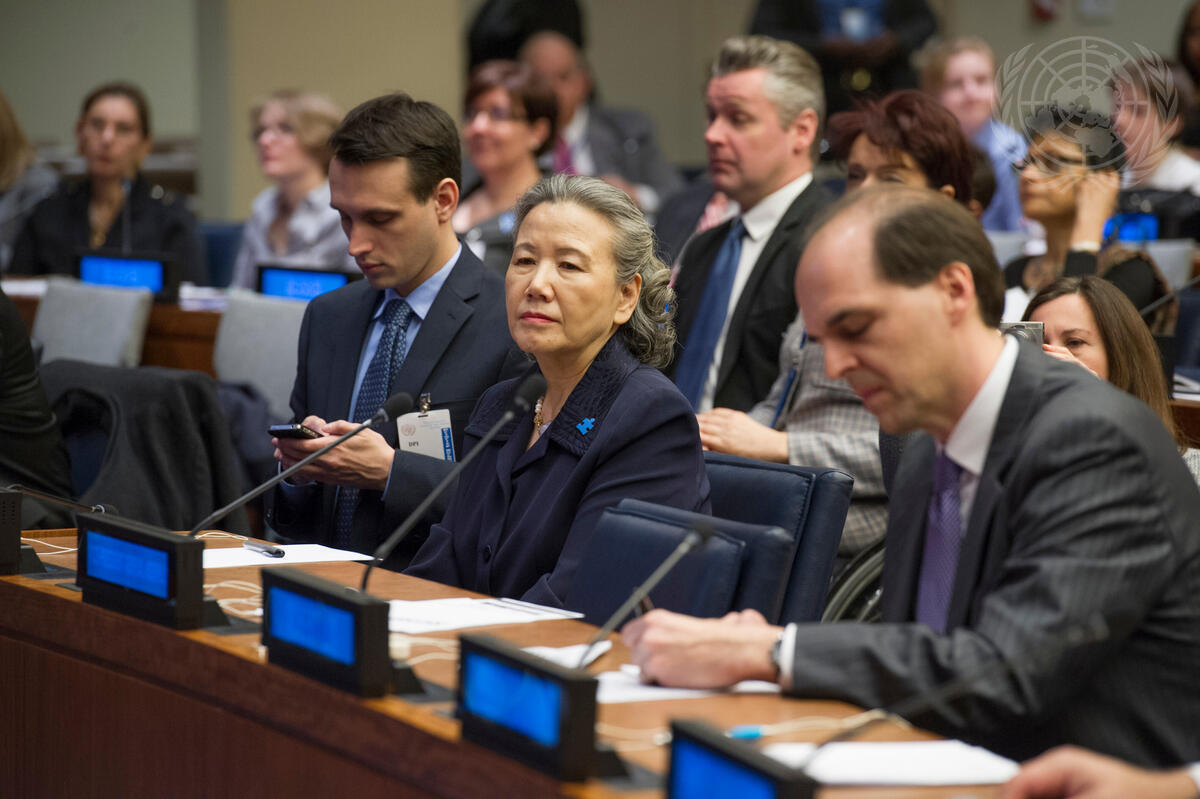Yoo Soon-taek (front centre), wife of Secretary-General Ban Ki-moon, during the special event on the theme, “Employment: The Autism Advantage”, held at UN headquarters on the occasion of World Autism Awareness Day (2 April).