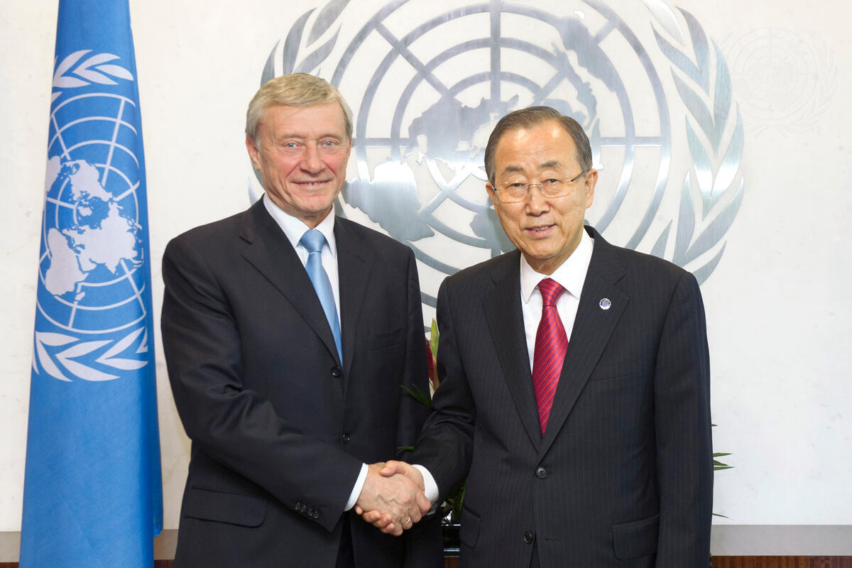 Secretary-General Ban Ki-moon (right) meets with Nikolay Bordyuzha, Secretary General of the Collective Security Treaty Organization (CSTO).