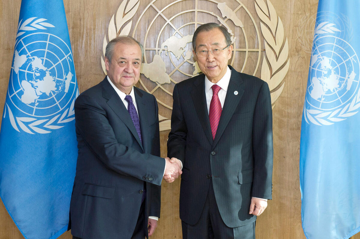 Secretary-General Ban Ki-moon (right) meets with Abdulaziz Kamilov, Minister for Foreign Affairs of the Republic of Uzbekistan.