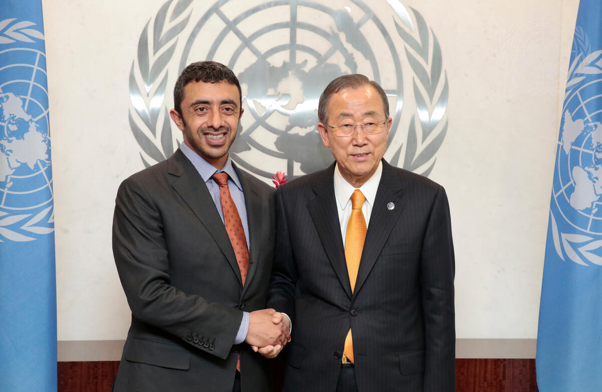 Secretary-General Ban Ki-moon (right) meets with Sheikh Abdullah bin Zayed Al Nahyan, Minister for Foreign Affairs of the United Arab Emirates (UAE), on the sidelines of the sixty-ninth General Debate of the General Assembly.