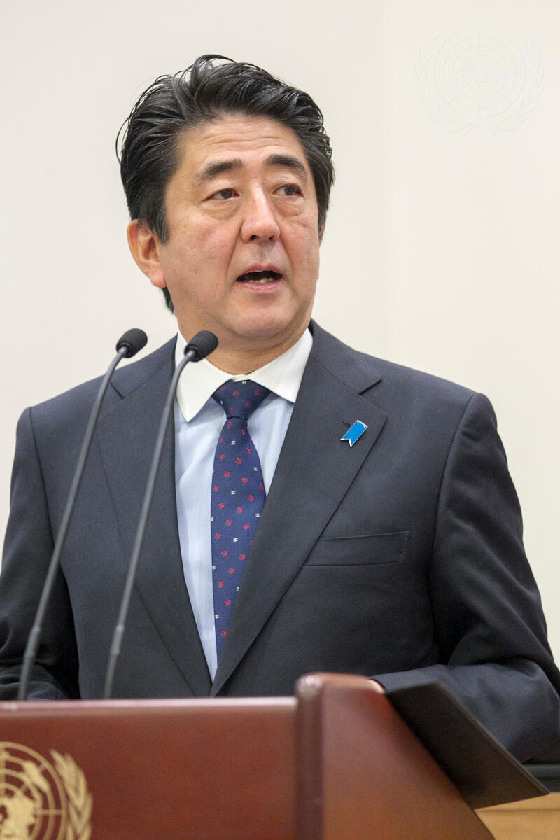 Shinzo Abe, Prime Minister of Japan, addresses a high-level meeting on the Response to the Ebola Virus Disease Outbreak.