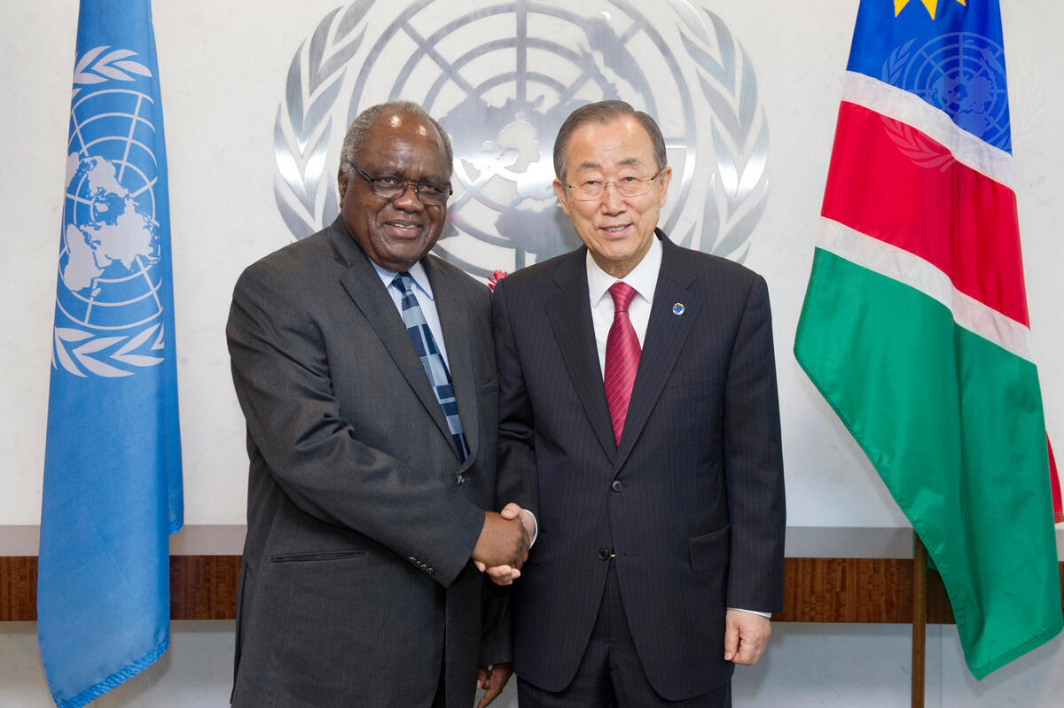 Secretary-General Ban Ki-moon (right) meets with Hifikepunye Pohamba, President of the Republic of Namibia.