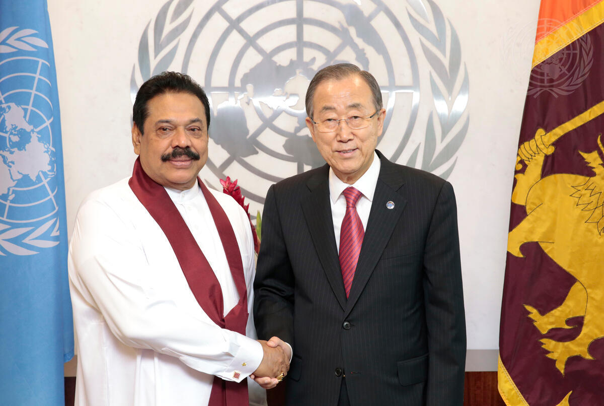 Secretary-General Ban Ki-moon (right) meets with Mahinda Rajapaksa, President of the Democratic Socialist Republic of Sri Lanka.