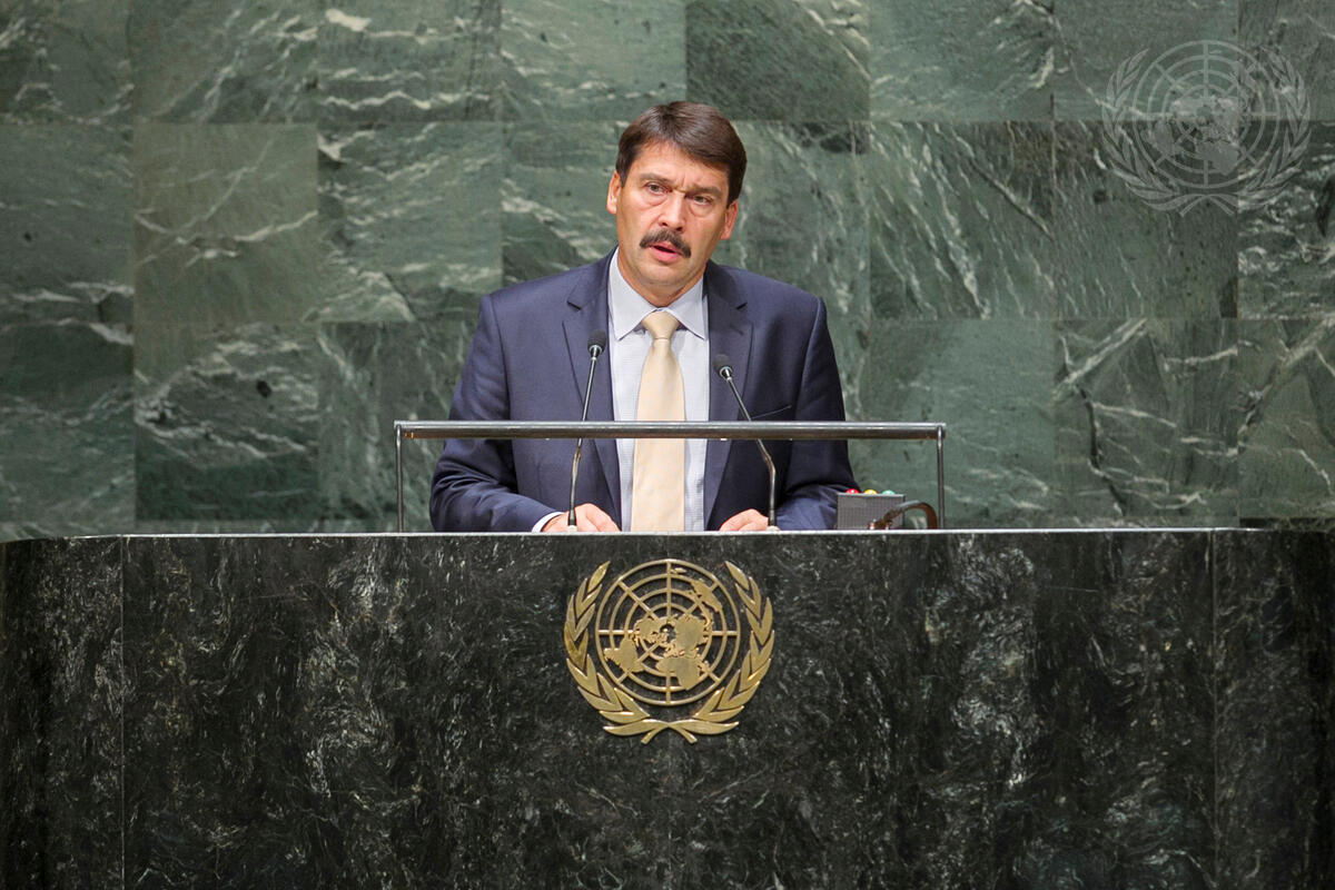 János Ader, President of Hungary, addresses the general debate of the sixty-ninth session of the General Assembly.