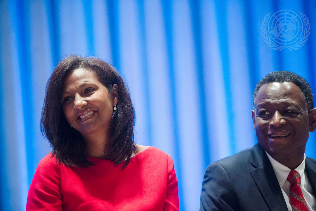 Two of today's panellists: Kim Simplis Barrow (left), Founder and Director of Lifeline Foundation, Special Envoy for Children and Women for Belize, and wife of Dean Barrow, Prime Minister of Belize, and Babatunde Osotimehin, Executive Director of United Nations Population Fund (UNFPA).