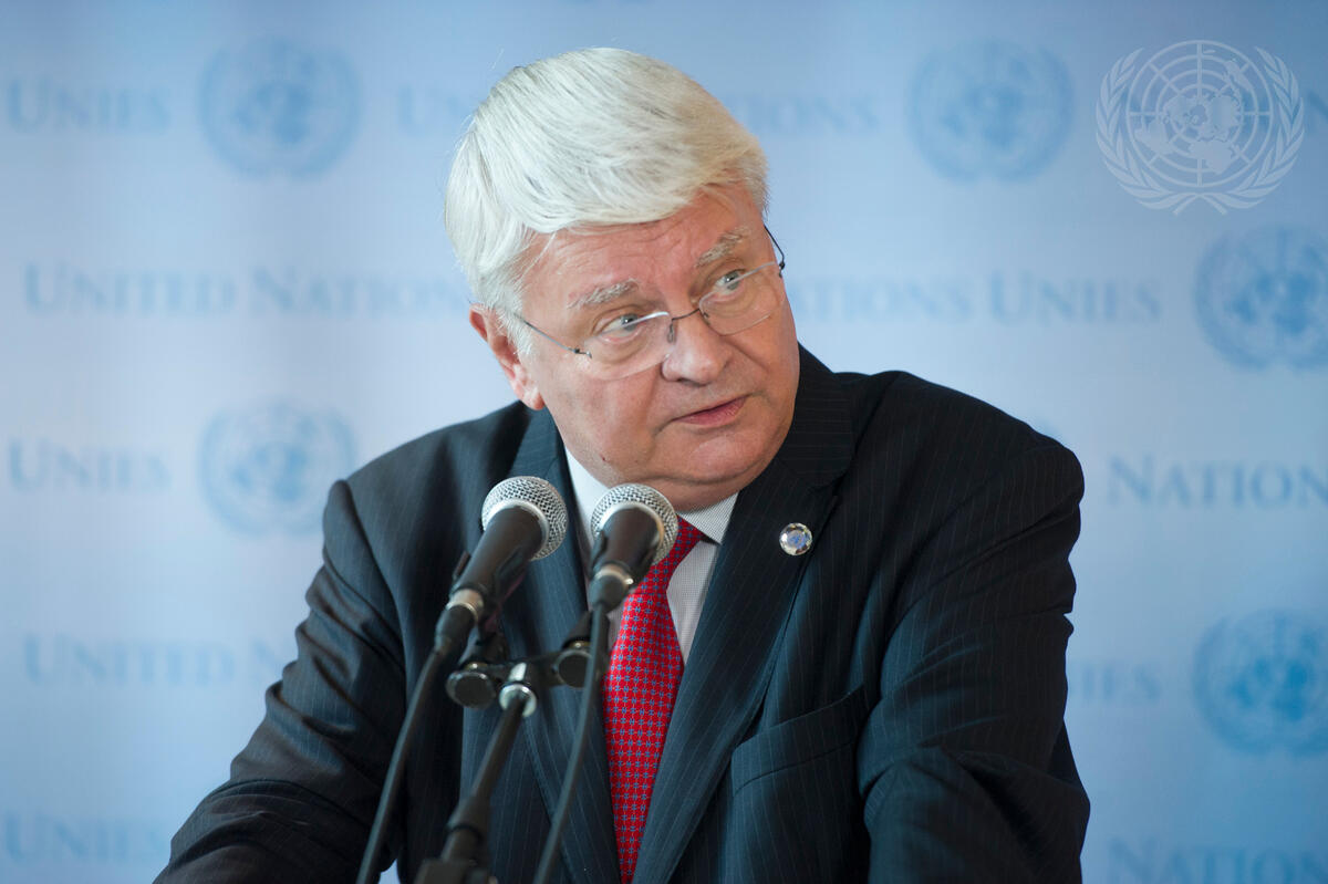 Hervé Ladsous, Under-Secretary-General for Peacekeeping Operations, briefs journalists on the Summit on Strengthening International Peace Operations, which took place earlier in the day.