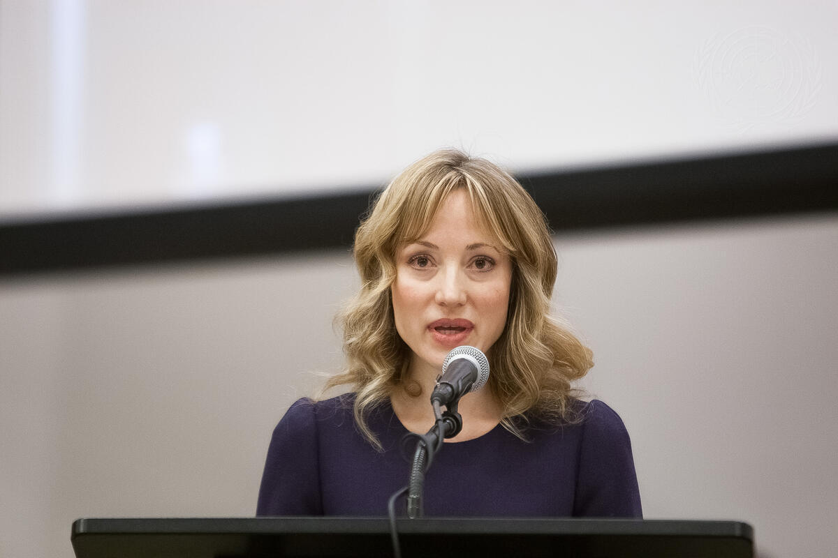 Mexican photographer and filmmaker Denise De La Rue speaks at the Open Meeting of the Group of Friends Alliance of Civilizations where she will unveil her new film ""A Cry for Peace"", a three minute production filmed in front of Pablo Picasso's famous artwork ""Guernica"".