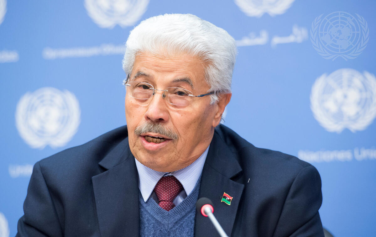 Mahmoud Tarsin, member of the Libyan National Crisis Resolution Initiative briefs journalists on the situation in Libya. He was joined by fellow members of the Initiative: Shahrazad Kablan, Fawzia Bariun and Tamim Baiou. The press conference was sponsored by the Permanent Mission of Libya to the UN.