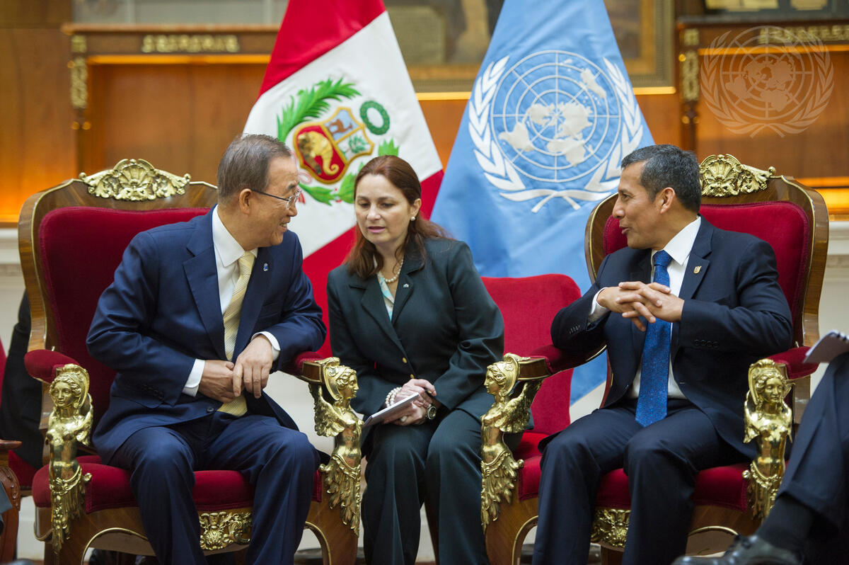Secretary-General Ban Ki-moon (left) meets with Ollanta Humala (right), President of Peru, in Lima.