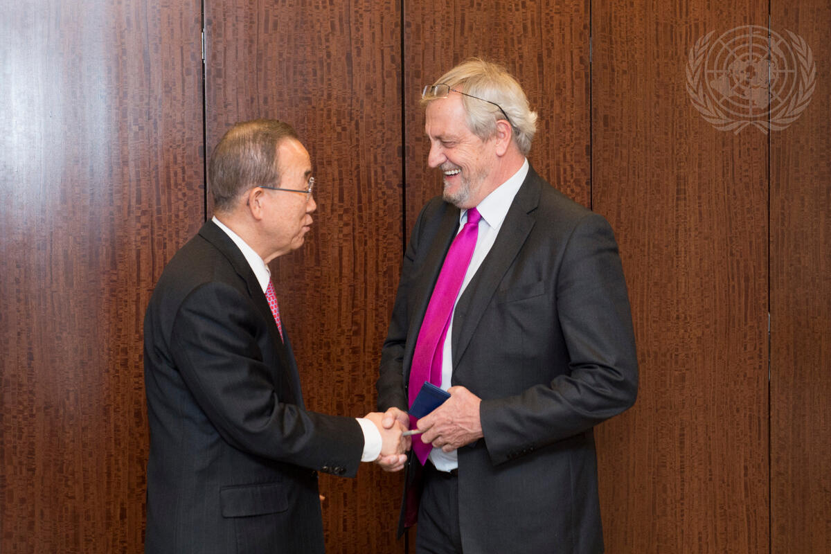 Secretary-General Ban Ki-moon (left) meets with Nicholas Haysom, his Special Representative and Head of the United Nations Assistance Mission in Afghanistan (UNAMA).