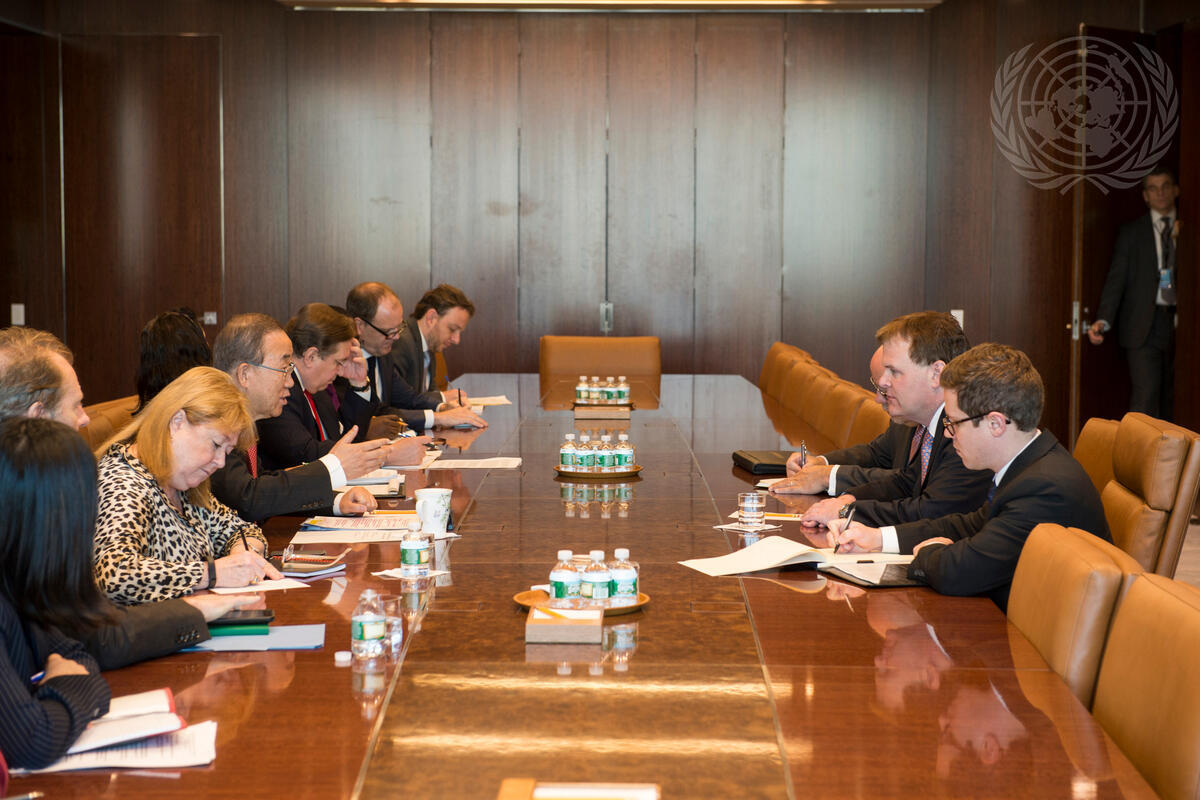 Secretary-General Ban Ki-moon (centre left) meets with John Baird (second from right), Minister for Foreign Affairs of Canada.