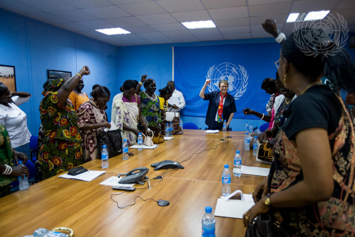 Participants of the Open Peace Forum meet with Ellen Margrethe Løj (at head of table), Special Representative of the Secretary-General and Head of the UN Mission in South Sudan (UNMISS). The group, comprised of representatives from the South Sudan Women Empowerment Network (SSWEN), the UNMISS Gender Unit and UN Women, presented their draft plan for implementation of UNSCR 1325 in South Sudan.