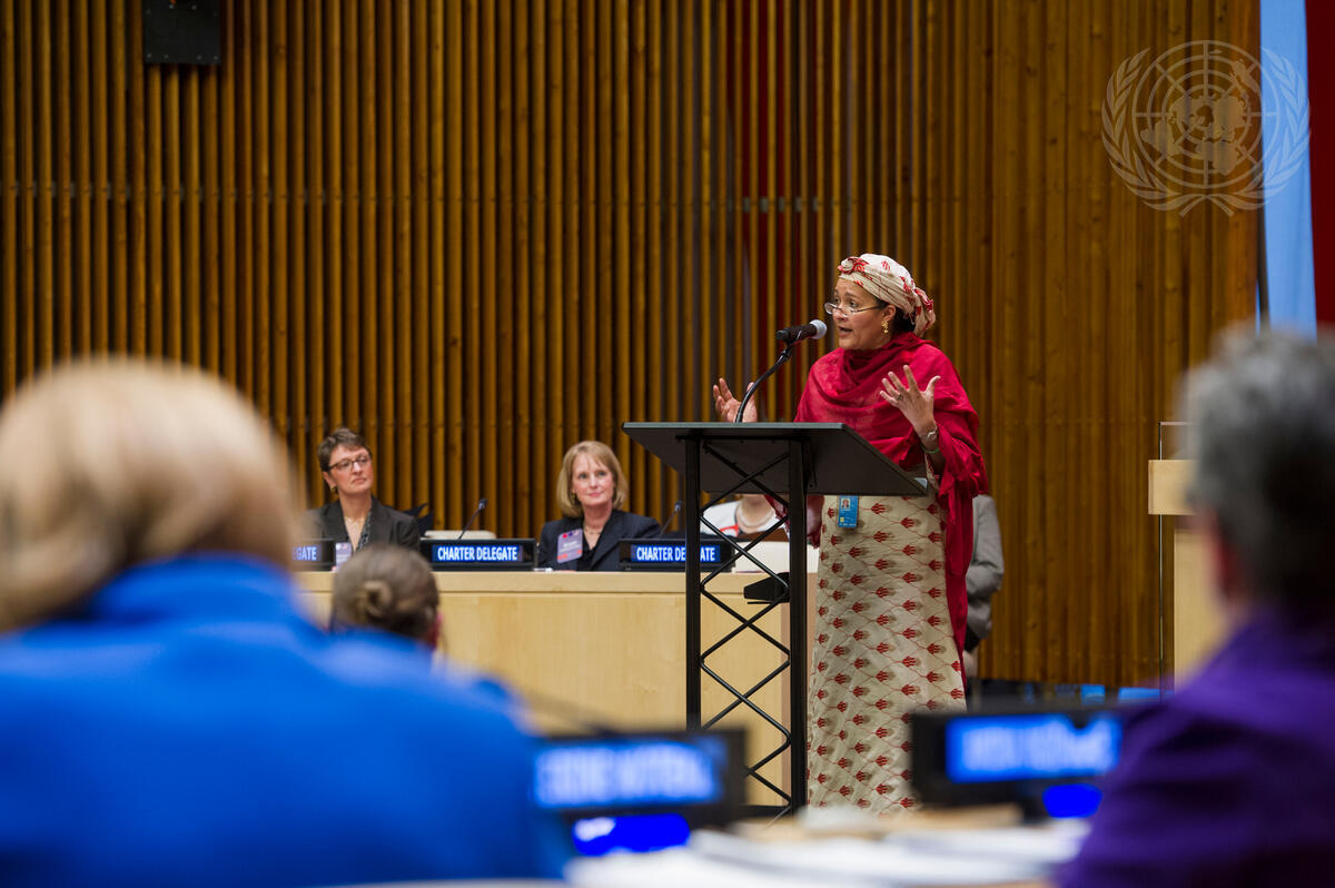 Amina Mohammed, Special Adviser on Post-2015 Development Planning, speaks at today's special event launching the ""Presidents United to Solve Hunger (PUSH)"" initiative. The event was co-organized by the World Food Programme (WFP), the Food and Agriculture Organization (FAO), the Hunger Solutions Institute, the Association of Public and Land-grant Universities (APLU), USAID's Board of International Food and Agriculture Development, the Zero Hunger Challenge, and the Alliance to End Hunger.