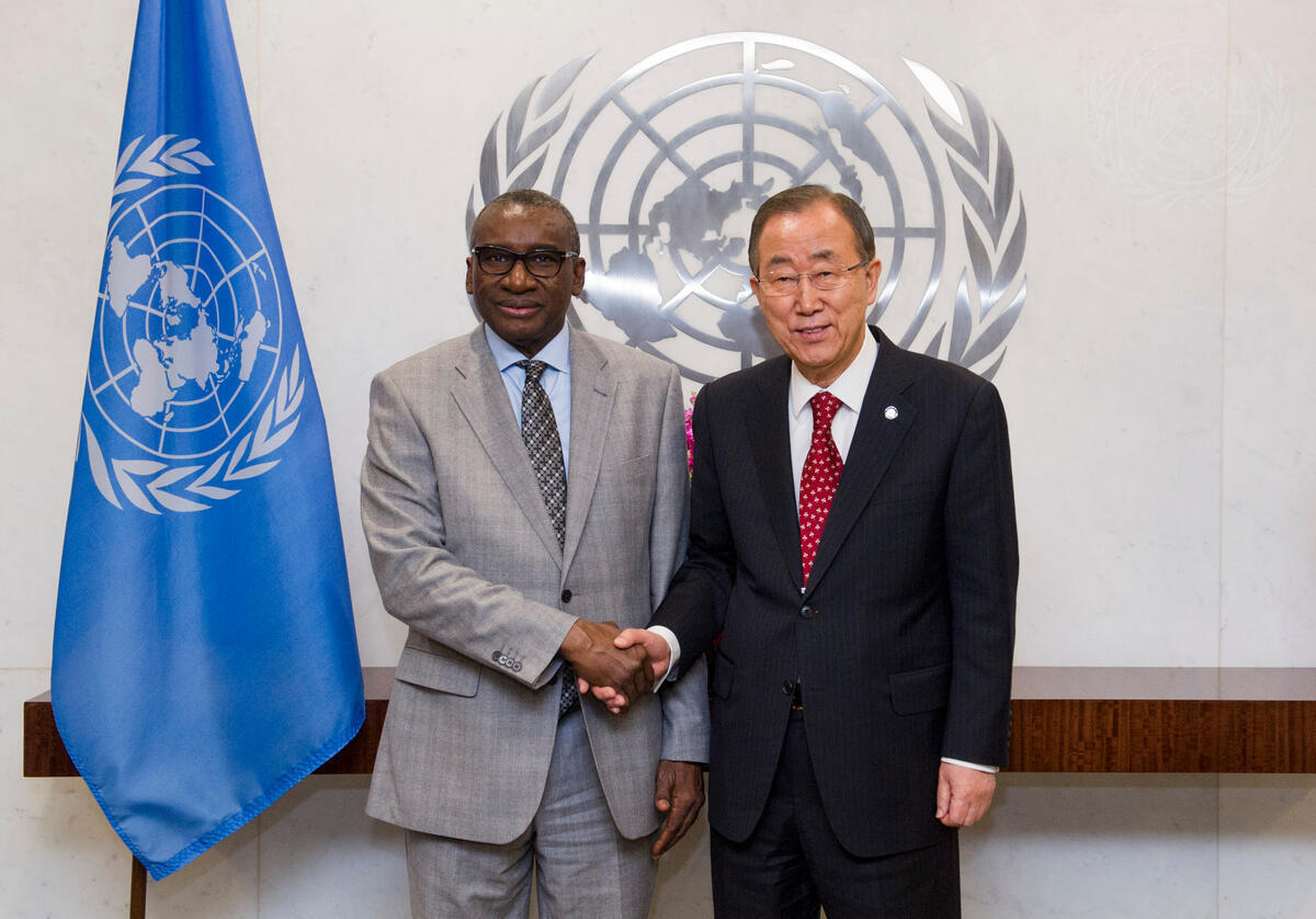 Secretary-General Ban Ki-moon (right) meets with Sidiki Kaba, Minister of Justice of Senegal and incoming President of the Assembly of States Parties to the Rome Statute.