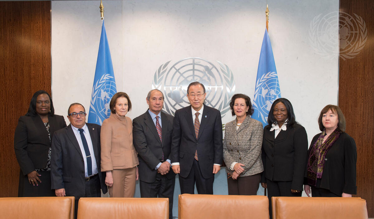 Secretary-General Ban Ki-moon (centre right) meets with the judges of the UN Appeals Tribunal (UNAT), including Tribunal President Richard Lussick (Samoa, centre left). From left: Deborah Thomas-Felix (Trinidad and Tobago), Luis Maria Simon (Uruguay), Ines Weinberg de Roca (Argentina), Rosalyn M. Chapman (United States), Sophia Adinyira (Ghana) and Mary Faherty (Ireland).