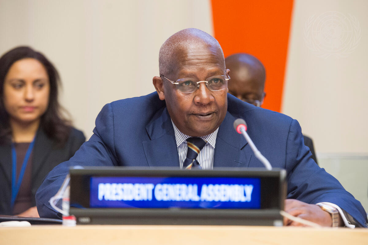 Sam Kutesa, President of the sixty-ninth session of the General Assembly, addresses the Annual Parliamentary Hearing on “Ensuring a people-centered approach to the new sustainable development goals (SDGs): a shared responsibility”. The meeting was co-organized by the Inter-Parliamentary Union (IPU) and the Office of the President of the General Assembly.