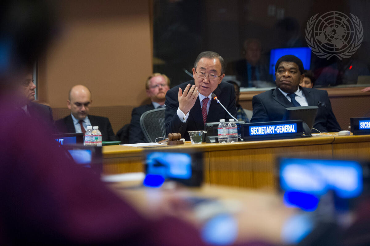 Secretary-General Ban Ki-moon addresses a meeting with members of the preparatory committee of the Fourth World Conference of Speakers of Parliament.