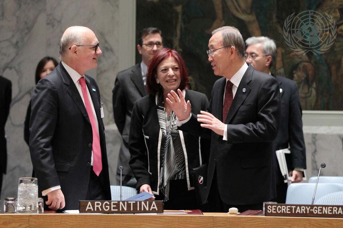 Secretary-General Ban Ki-moon (right) with Héctor Marcos Timerman (left), Minister for Foreign Affairs of Argentina; and María Cristina Perceval (centre), Permanent Representative of Argentina to the UN, at the debate.