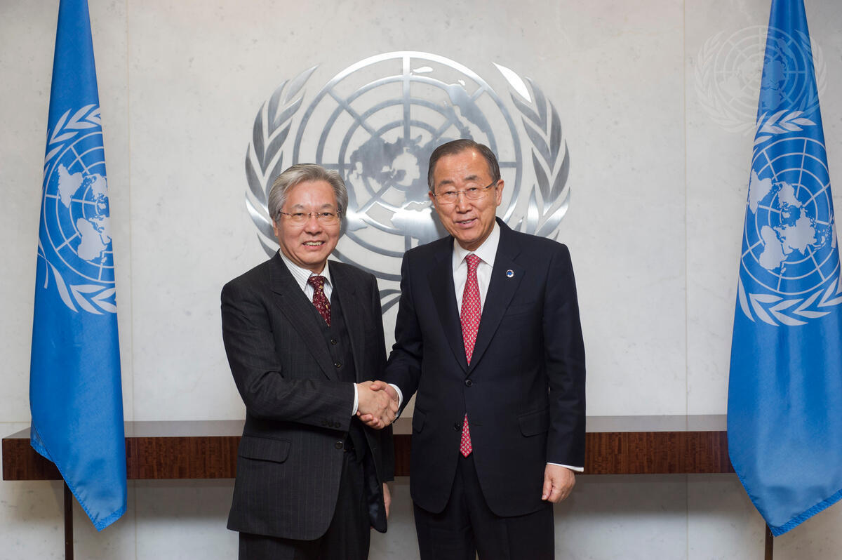 Secretary-General Ban Ki-moon (right) meets with Tadamichi Yamamoto, his Deputy Special Representative for the United Nations Assistance Mission in Afghanistan (UNAMA).