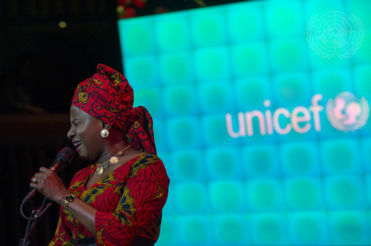Angélique Kidjo, singer-songwriter, performs at the global launch of the UN Children’s Fund (UNICEF) “Imagine Project”, a musical and technological initiative helping to highlight the challenges that children face throughout the world and to raise funds for UNICEF’s work in more than 190 countries and territories.