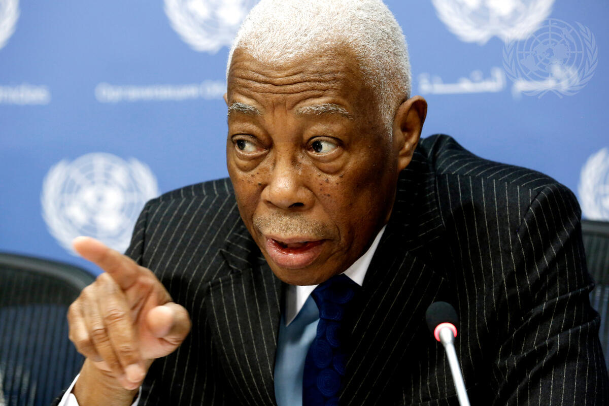 Arnold Nicholson, Minister for Foreign Affairs and Trade of Jamaica, addresses a press conference on the occasion of the International Day of Remembrance of Victims of Slavery and the Transatlantic Slave Trade (25 March).
