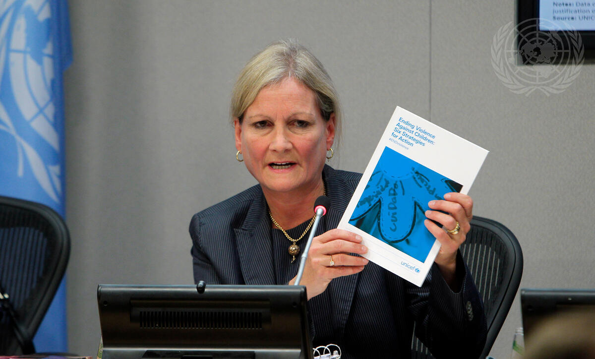 Susan Bissell, Chief of Child Protection at the UN Children’s Fund (UNICEF), speaks to the press about their new report, ""Hidden in Plain Sight: A statistical analysis of violence against children"" which includes the largest-even compilation of data on violence against children. The report found that about two thirds of children worldwide between ages 2 and 14 (almost 1 billion) are subjected to physical punishment by their caregivers on a regular basis.