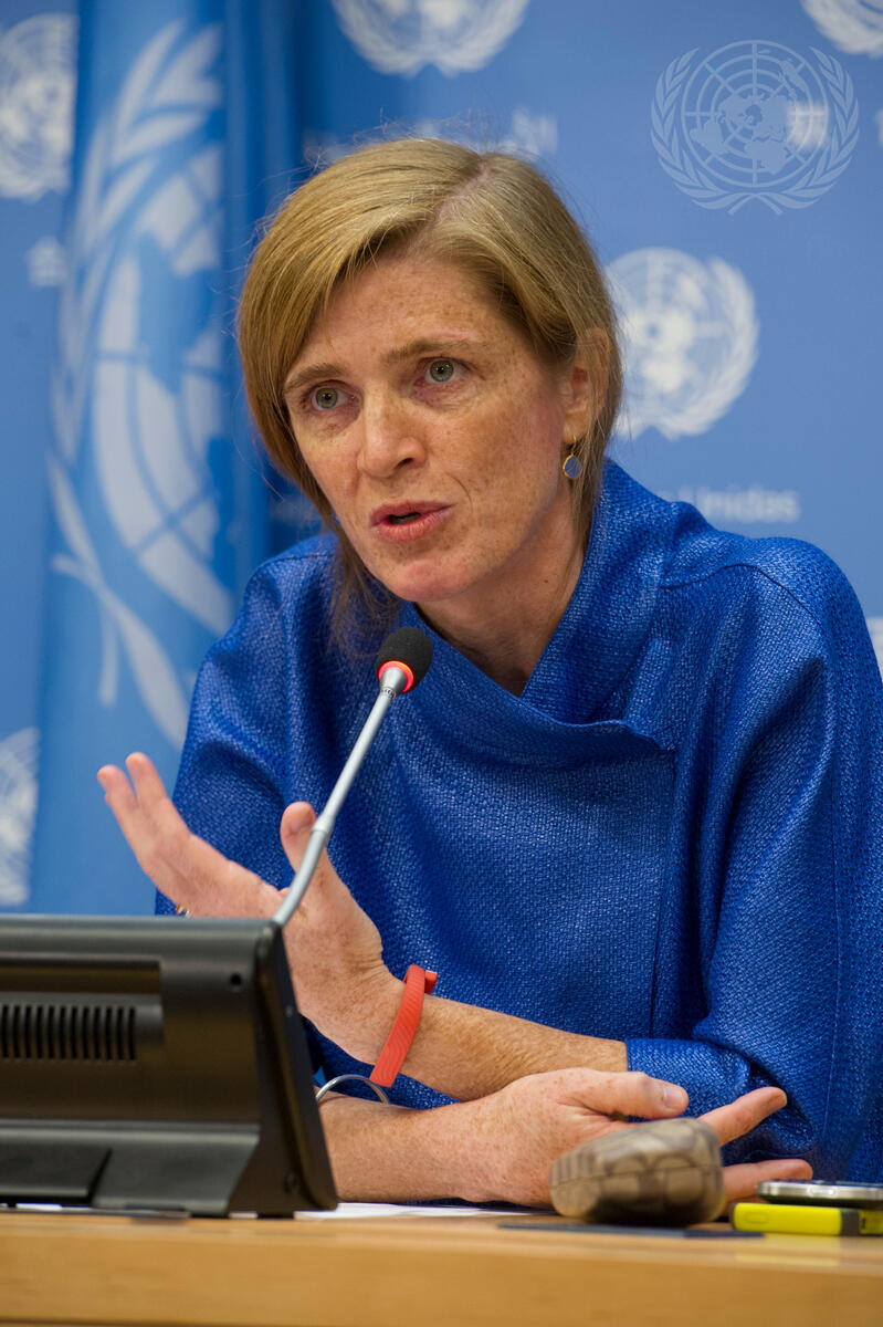 Samantha Power, United States Permanent Representative to the UN and President of the Security Council for the month of September, briefs journalists on the Council’s programme of work for the month.