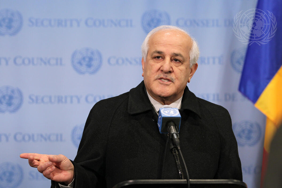 Permanent Observer of Palestine Speaks to Press Following Security Council Meeting on Middle East