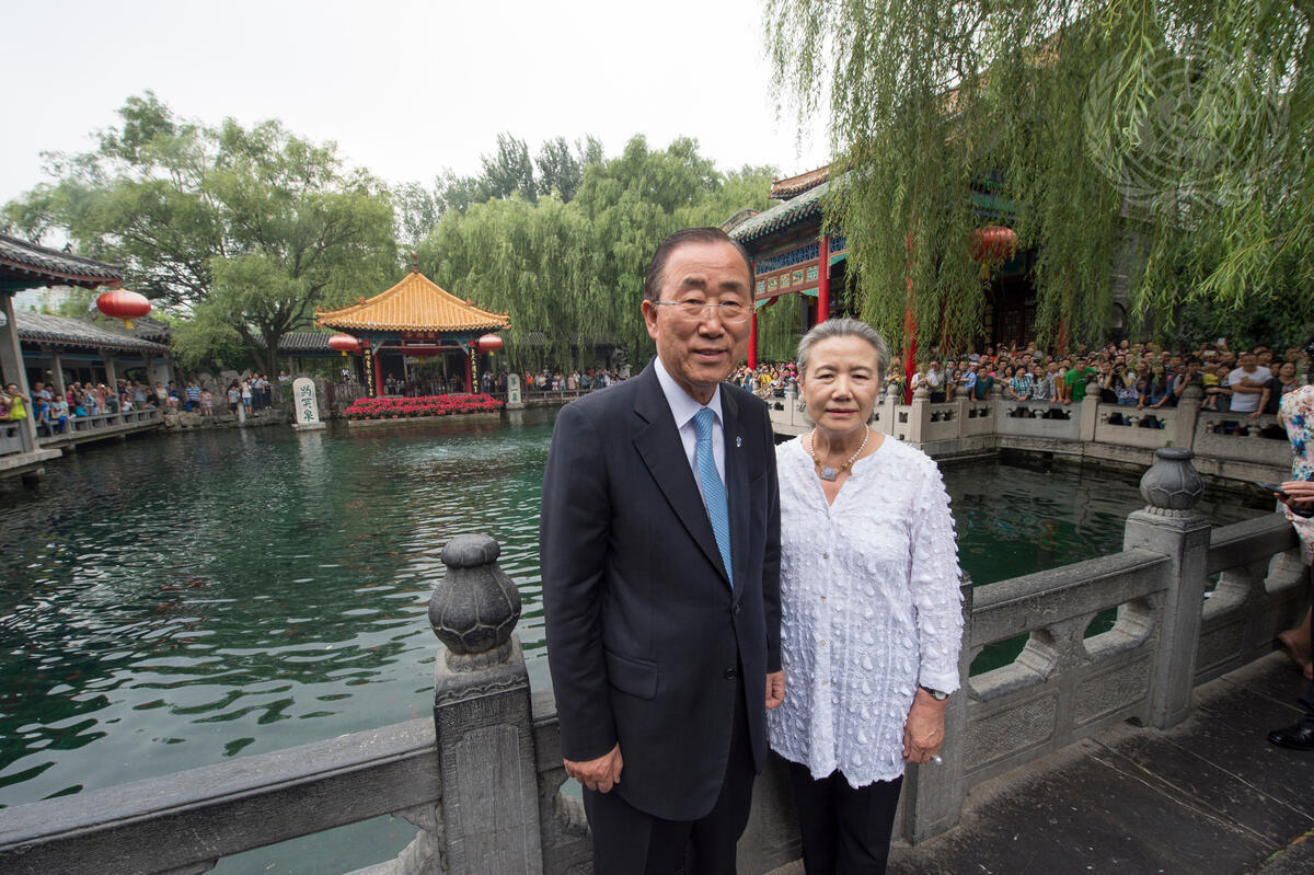 Secretary-General Ban Ki-moon and his wife, Yoo Soon-taek, visit the Baotu Spring in the city of Jinan, in Shandong Province, China.