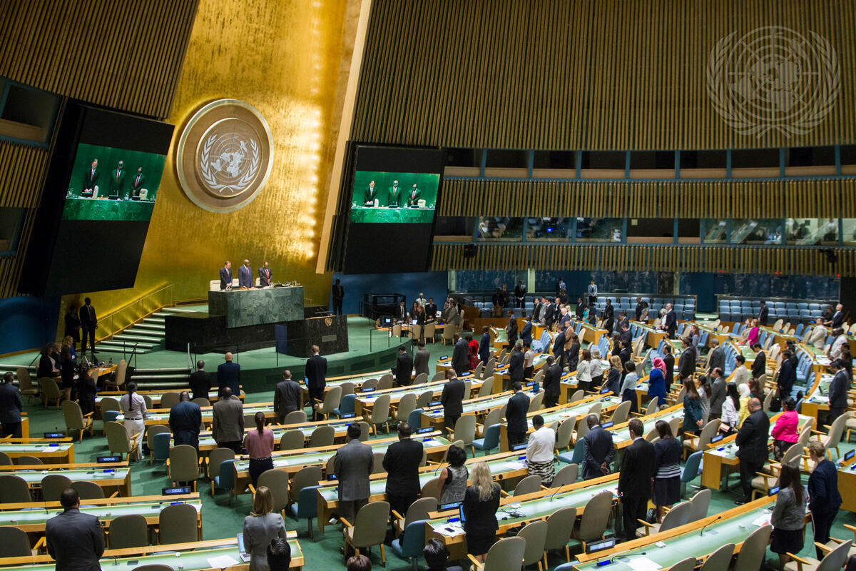 The General Assembly observes a moment of silent meditation during the closing meeting of its sixty-ninth session.