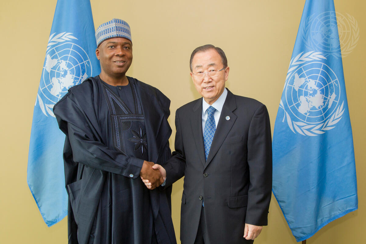 Secretary-General Ban Ki-moon (right) meets with Olubukola Abubakar Saraki, President of the Senate of Nigeria.