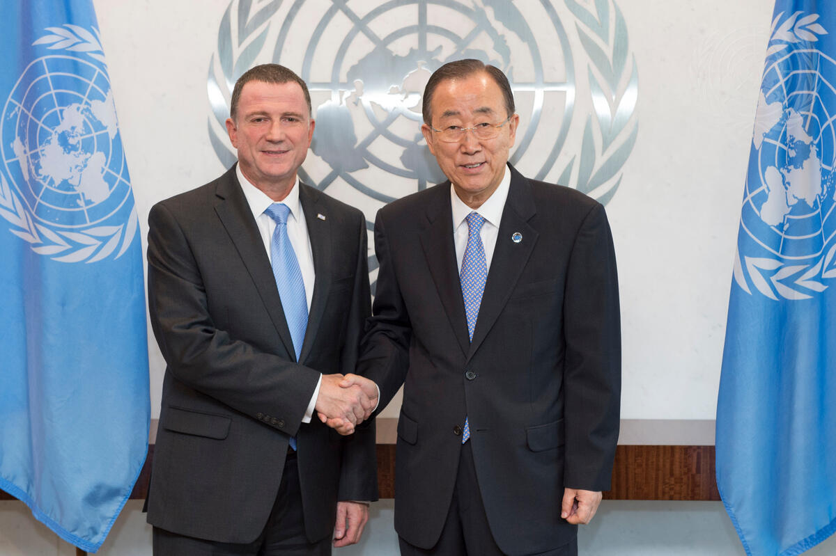 Secretary-General Ban Ki-moon (right) meets with Yuli-Yoel Edelstein, Speaker of the Knesset (or parliament) of Israel.