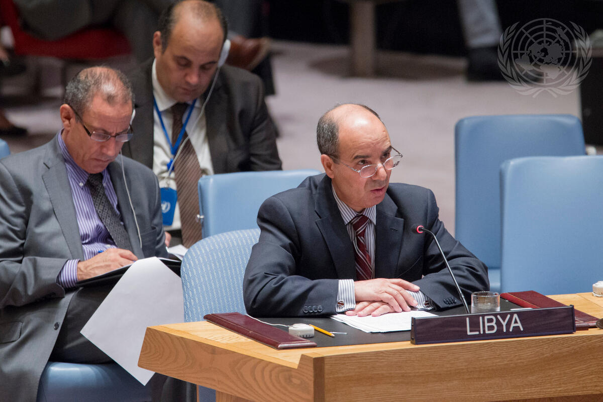 Ibrahim Dabbashi, Permanent Representative of Libya to the UN, addresses the Security Council meeting on the situation in his country.