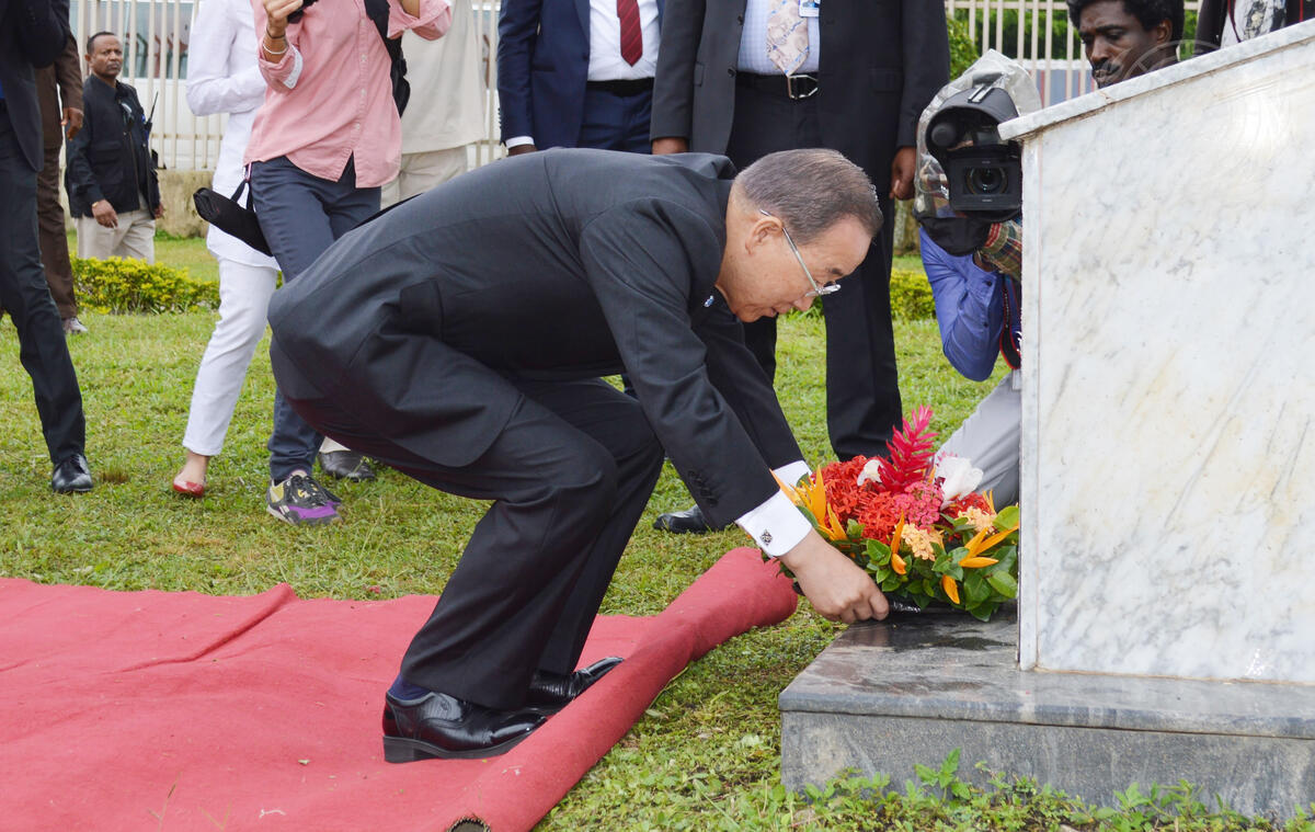 During his two-day visit to Nigeria, Secretary-General Ban Ki-moon took part in the commemoration of the fourth anniversary of the terrorist attack on UN House in Abuja, which claimed the lives of 23 UN staff members.