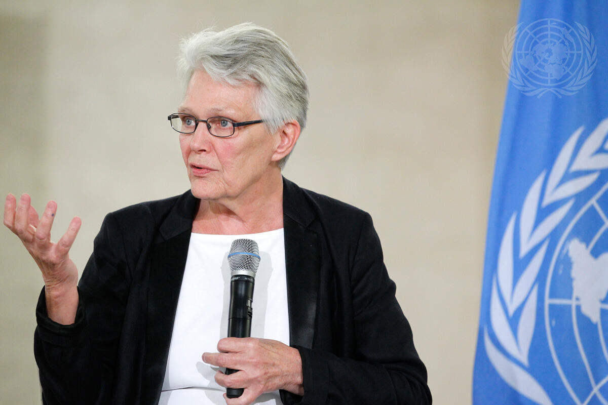 Margareta Wahlström, Special Representative of the Secretary-General for Disaster Risk Reduction, speaks during a panel discussion on how the Sustainable Development Goals, expected to be adopted by the General Assembly in September, will impact humanitarian work and response. The discussion took place as part of the observance of World Humanitarian Day (19 August) by the UN Office at Geneva (UNOG).