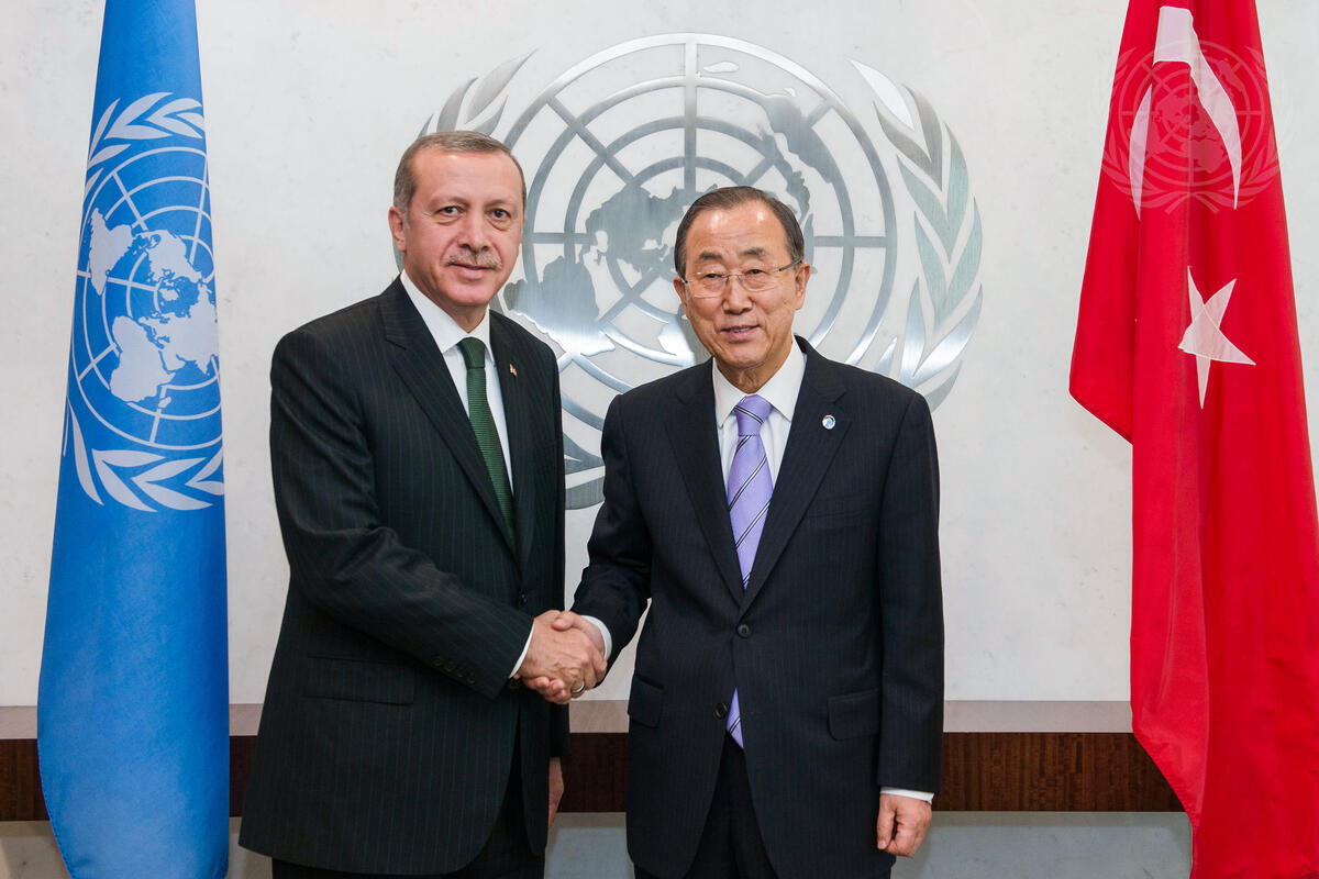 Secretary-General Ban Ki-moon (right) meets with Recep Tayyip Erdogan, President of Turkey.