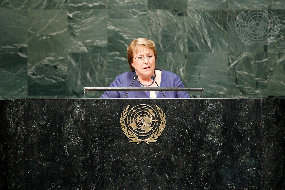 Michelle Bachelet, President of Chile, addresses the General Assembly special session on the follow-up to the Programme of Action of the International Conference on Population and Development beyond 2014.