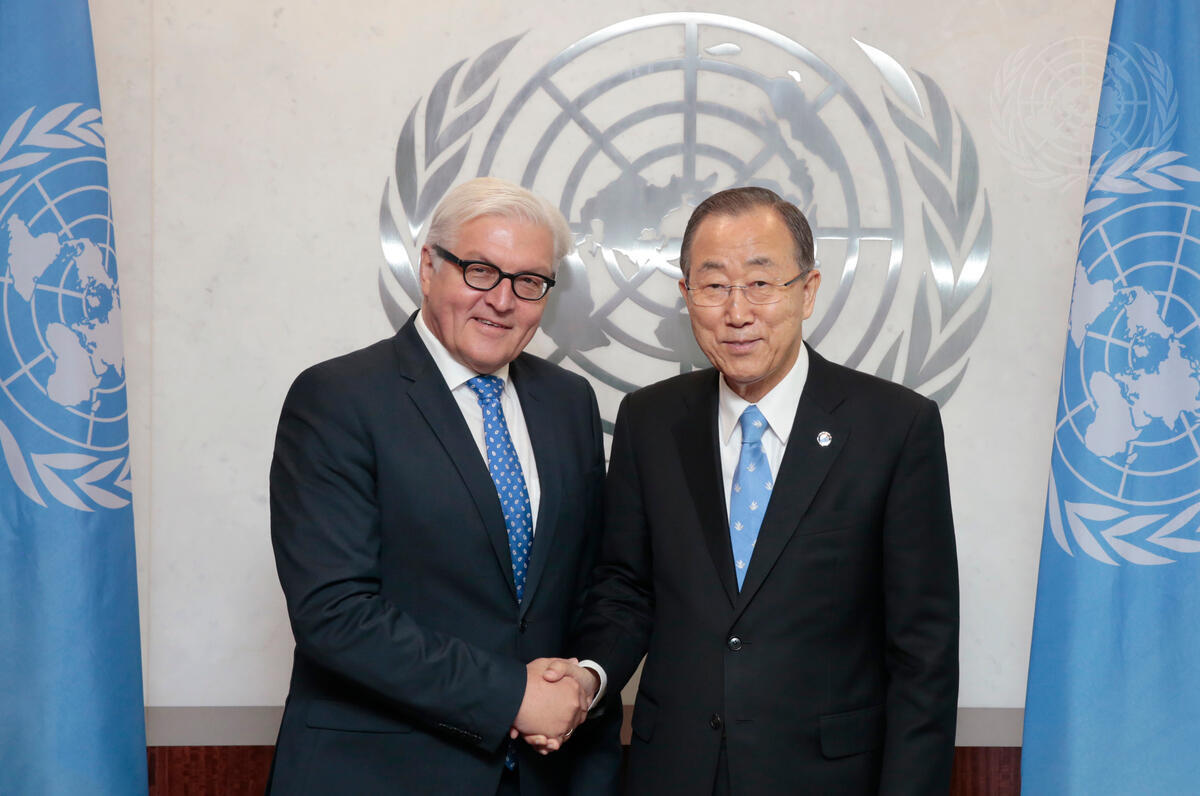 Secretary-General Ban Ki-moon (right) meets with Frank-Walter Steinmeier, Minister for Foreign Affairs of Germany.