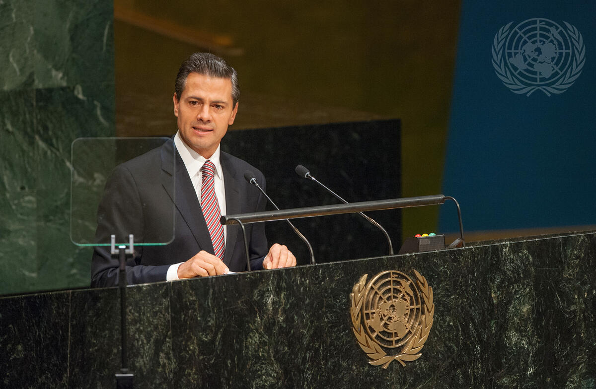 Enrique Peña Nieto, President of Mexico, addresses the opening of the high-level plenary meeting of the General Assembly known as the World Conference on Indigenous Peoples.