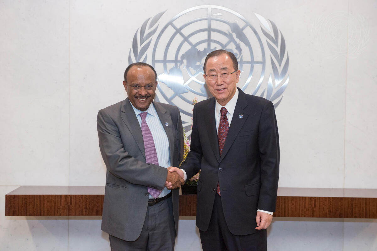 Tegegnework Gettu (left), outgoing Under-Secretary-General for General Assembly and Conference Management, pays a farewell call on Secretary-General Ban Ki-moon.
