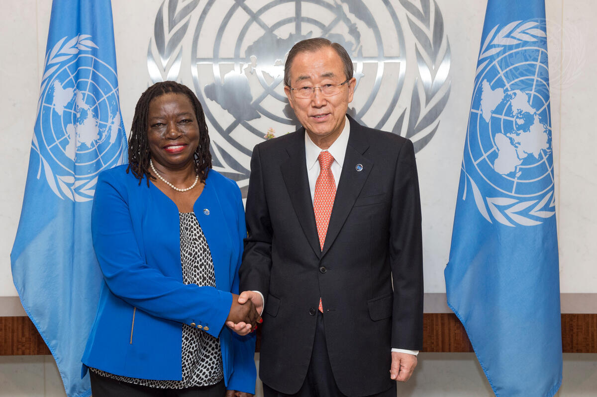 Secretary-General Ban Ki-moon (right) with Fadzai Gwaradzimba, newly sworn-in Assistant Secretary-General for Safety and Security.