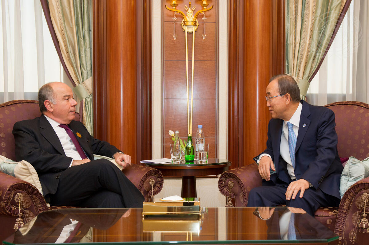 Secretary-General Ban Ki-moon (right) meets with Mauro Vieira, Minister for External Relations of Brazil, in Riyadh, Saudi Arabia.