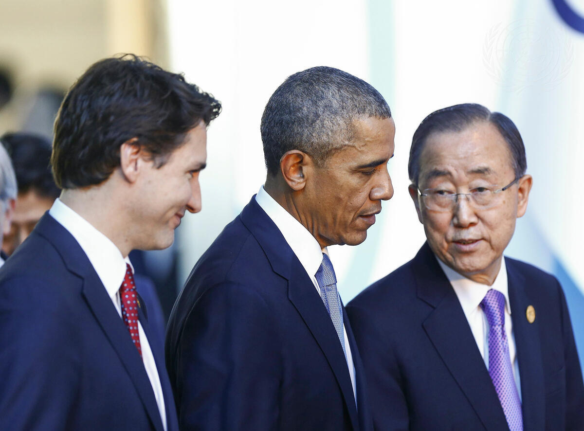 Secretary-General Ban Ki-moon (right), United States President Barack Obama (centre) and Canadian Prime Minister Justin Trudeau arrive for a group photo during the G20 Turkey Leaders Summit in Antalya, Turkey.