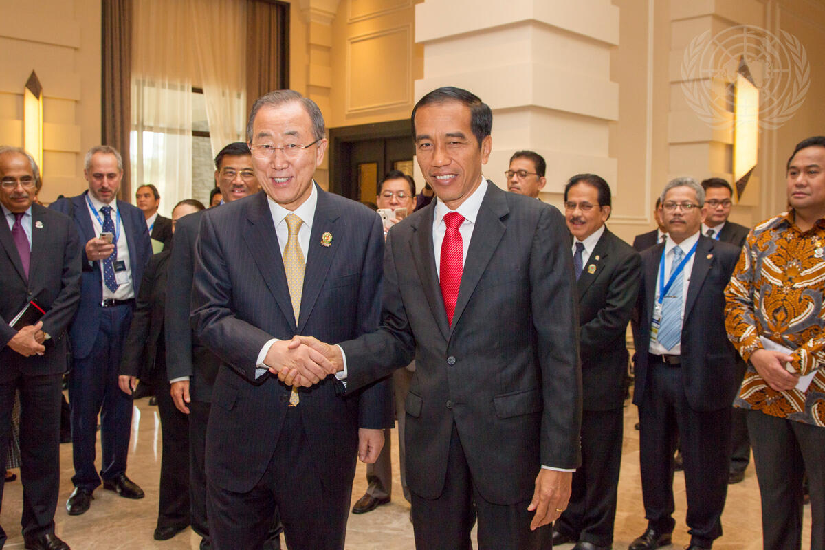 Secretary-General Ban Ki-moon (left) meets with Joko Widodo (right), President of the Republic of Indonesia, in Nay Pyi Taw, Myanmar.