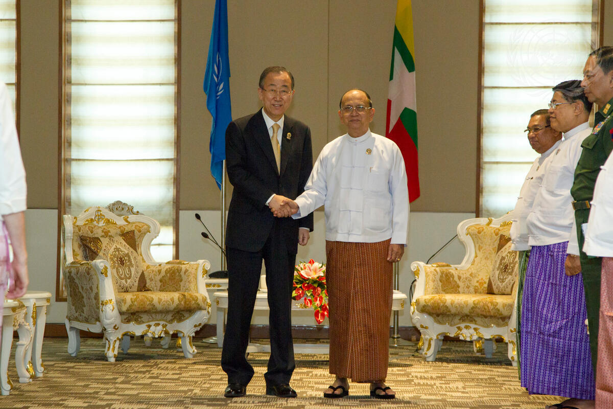 Secretary-General Ban Ki-moon (left) meets with Thein Sein, President of the Republic of the Union of Myanmar.